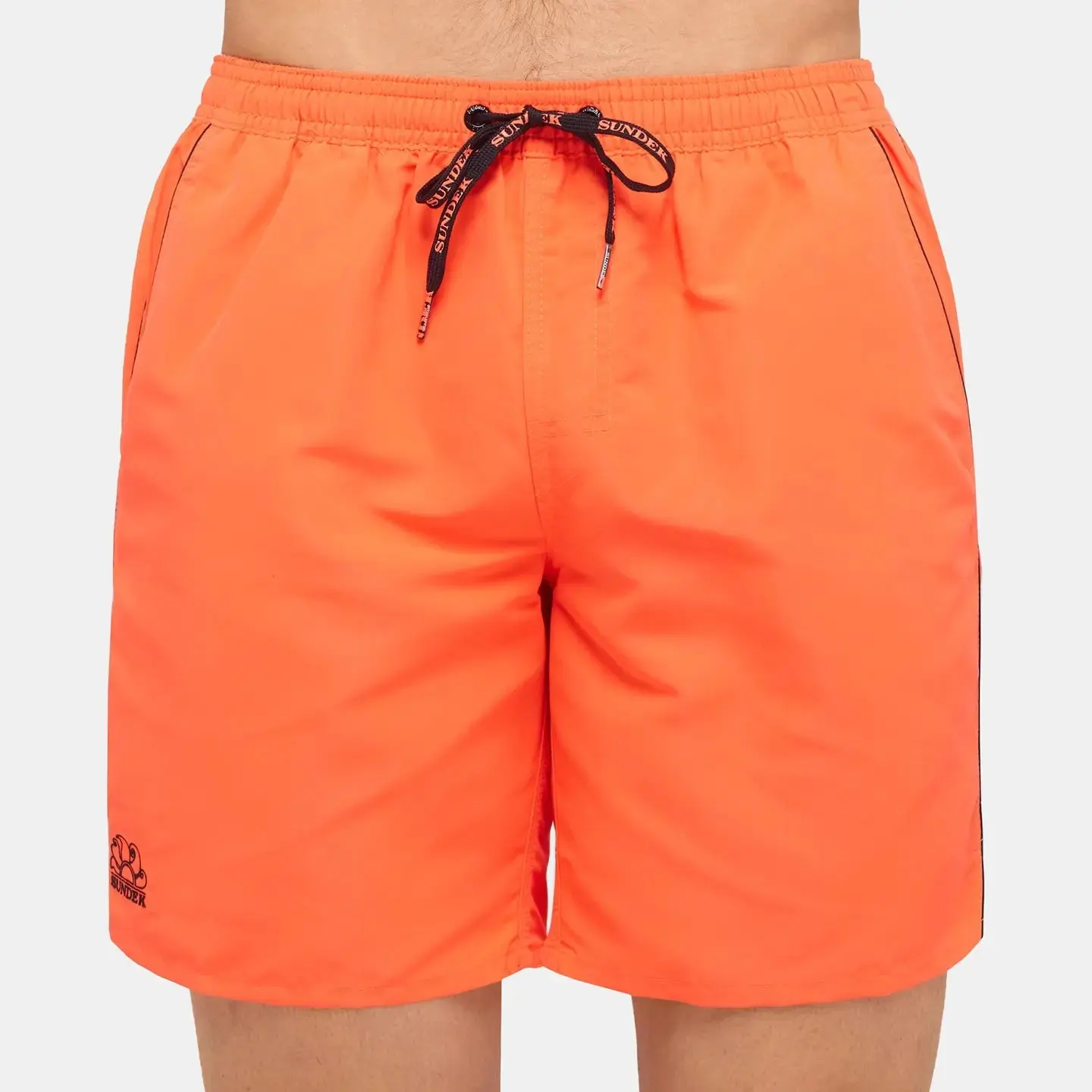 Swimming shorts made from nylon and polyester. They are designed for use in swimming and other water activities. The color is a beautiful orange.